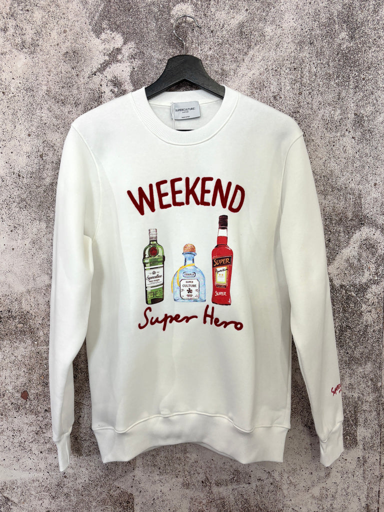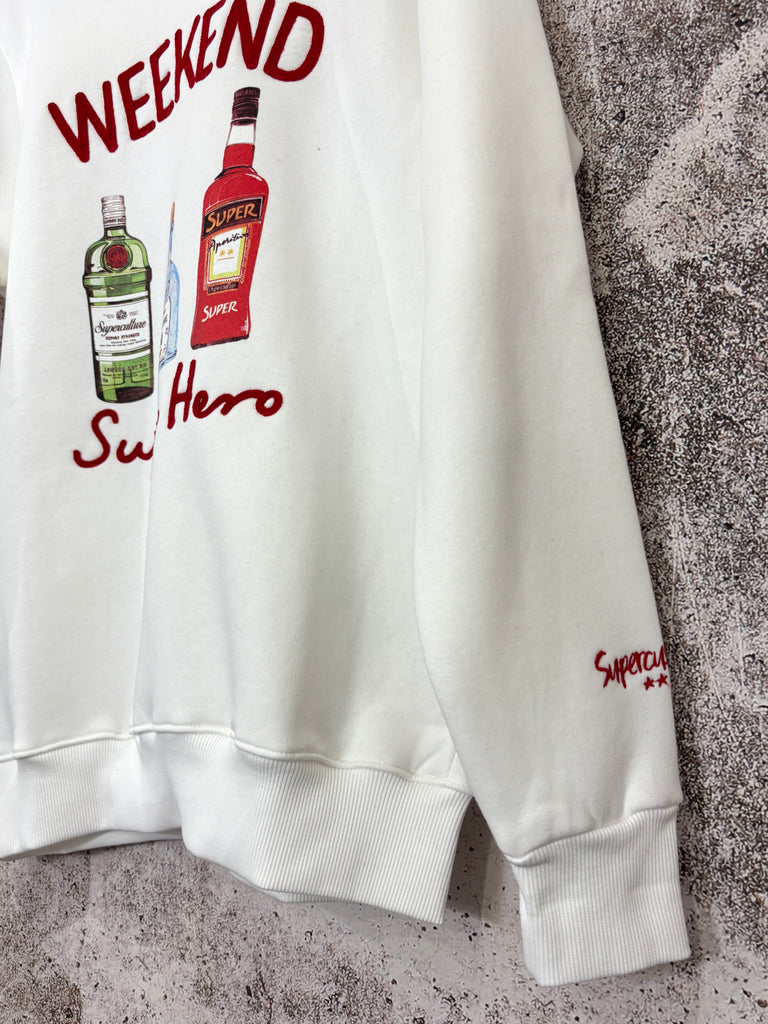 Felpa in cotone felpato di Superculture con ricamo Weekend Superhero e stampa, la consigliamo in abbinamento con un jeans per un look casual