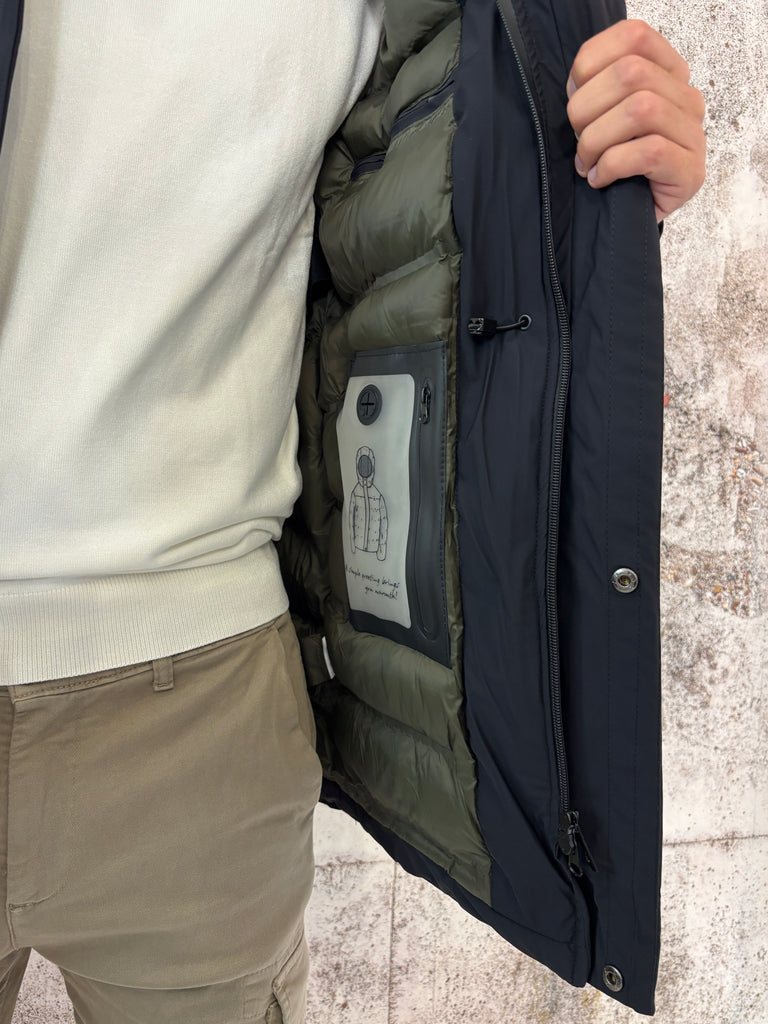 - Quattro tasche esterne con chiusura con zip termosaldate