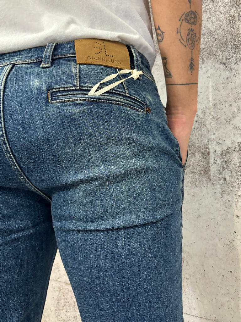 Jeans Slim fit elasticizzato di Gianni Lupo con tasche taglio pantalone; Consigliamo l' abbinamento ad un maglione girocollo o dolcevita per un outfit casual