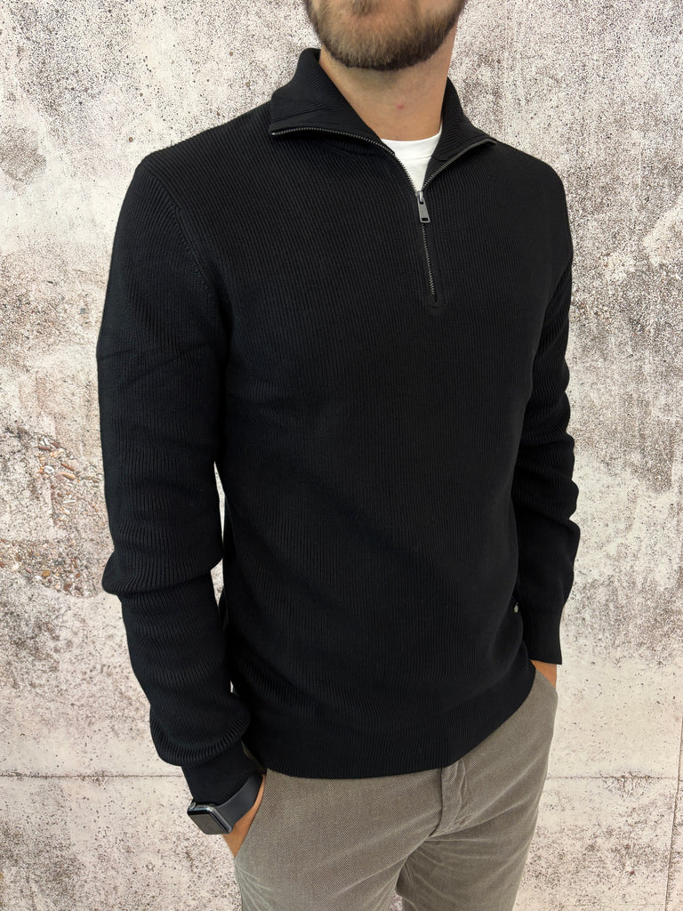 Maglione costine mezza zip di Gianni Lupo che unisce eleganza a sportività, adatto per diversi look: dalla vita di tutti i giorni al contesto lavorativo