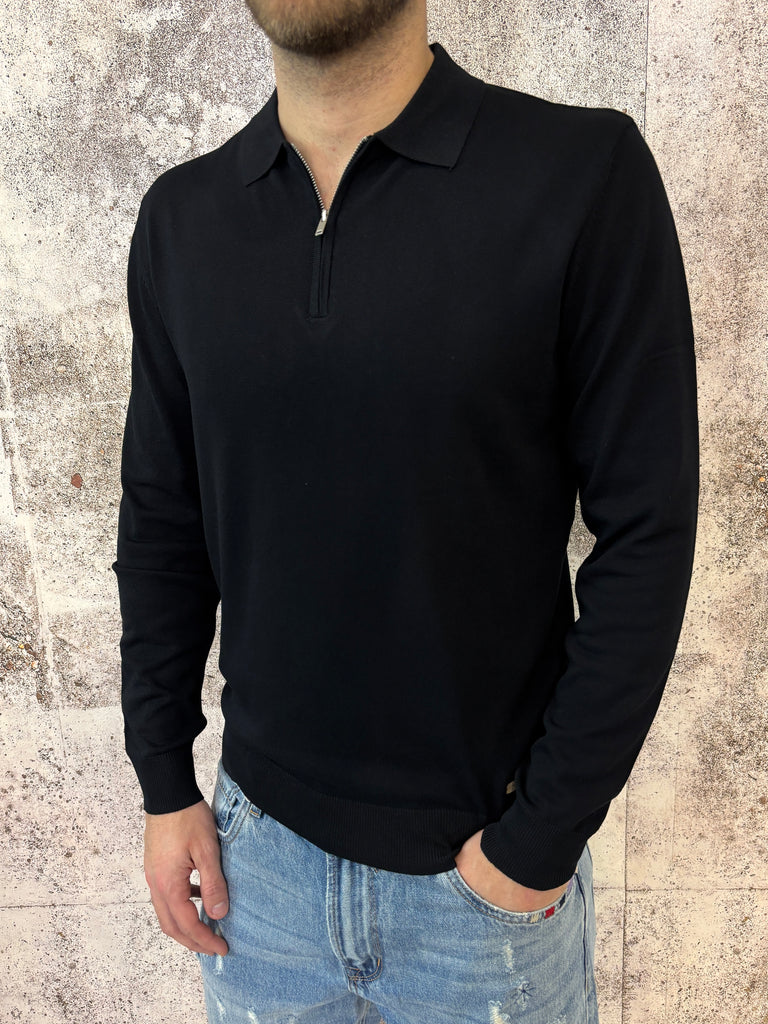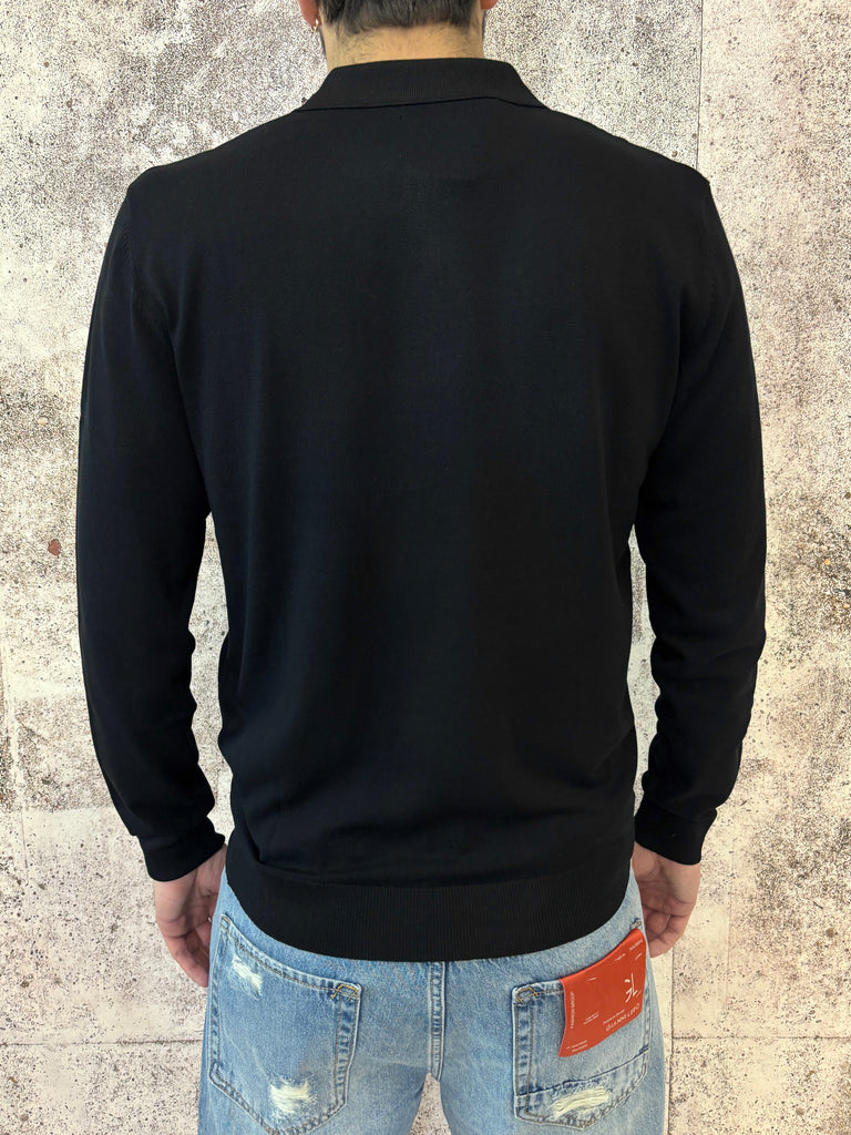 Polo nera con zip manica lunga