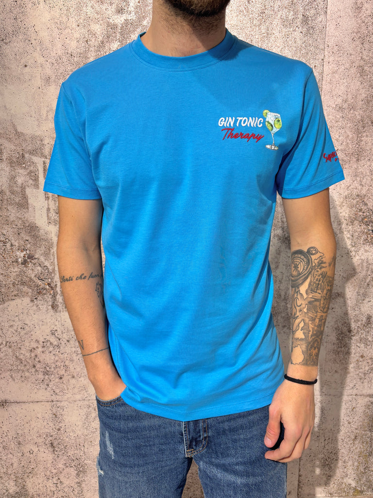 T-Shirt azzurra Gin Tonic con stampa sul retro