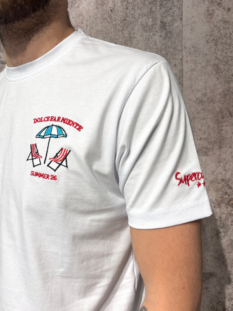 - Scritta ricamata lato cuore e logo ricamato sulla manica sinistra