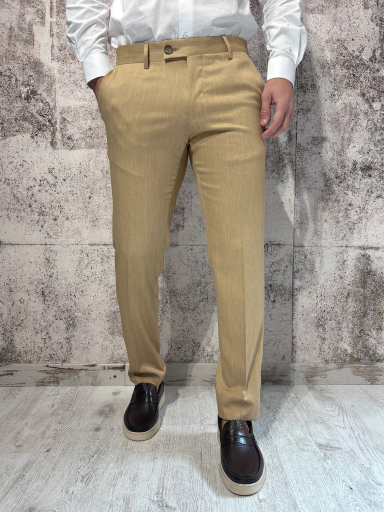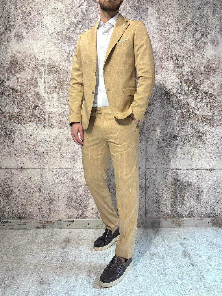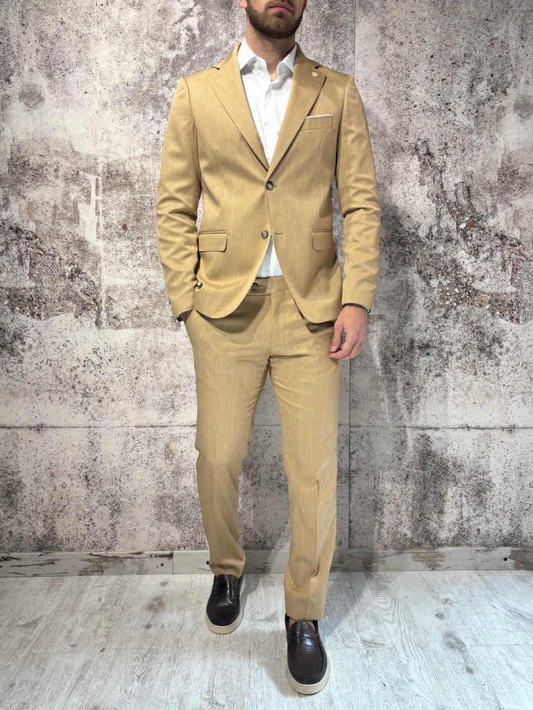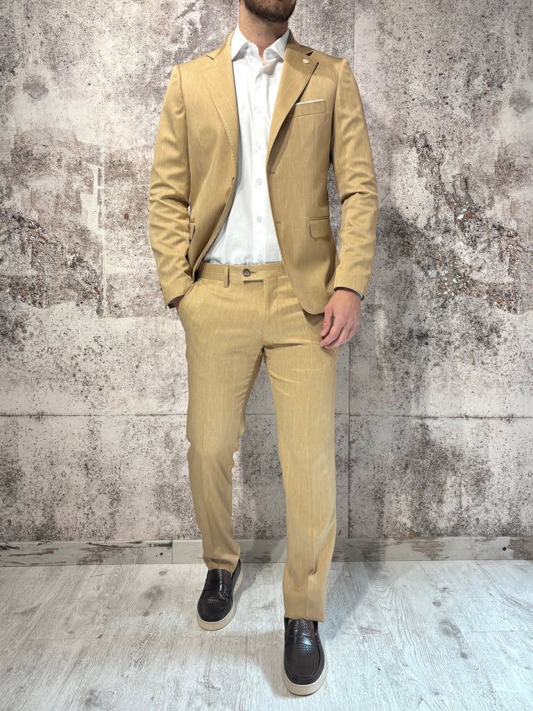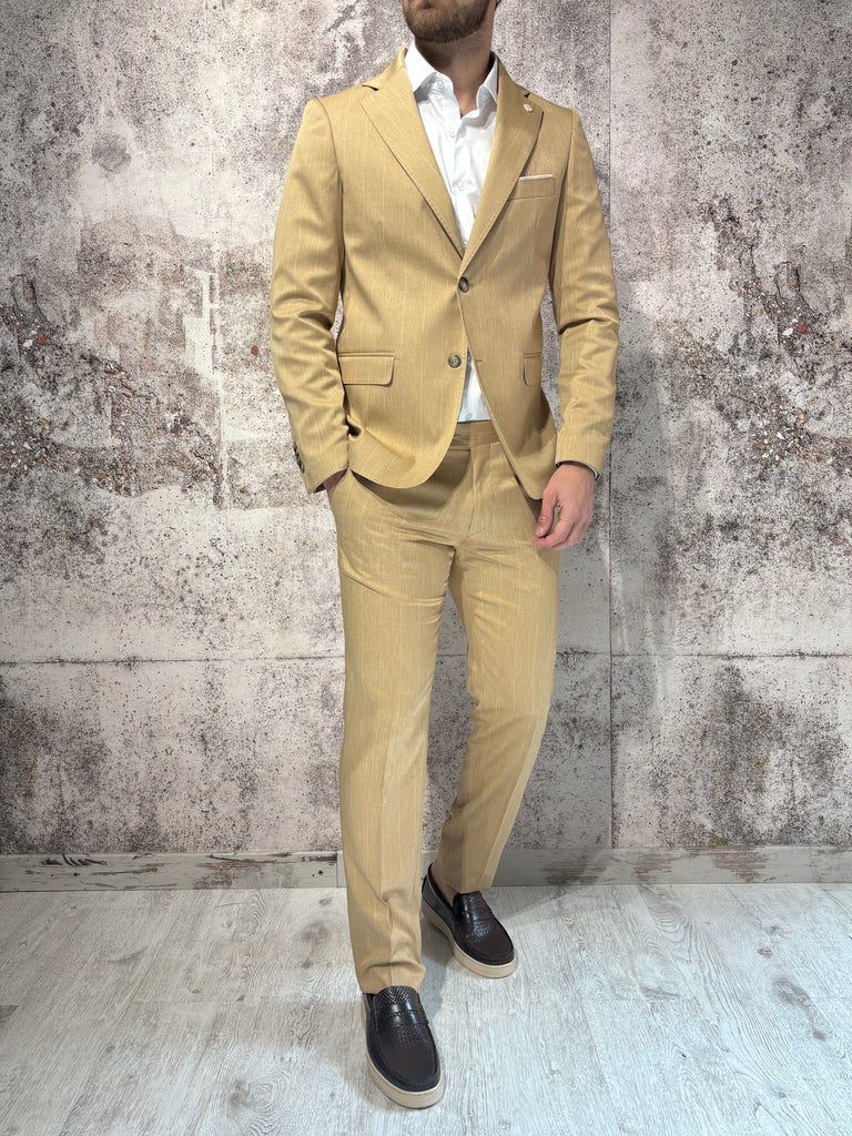 Abito gessato cammello