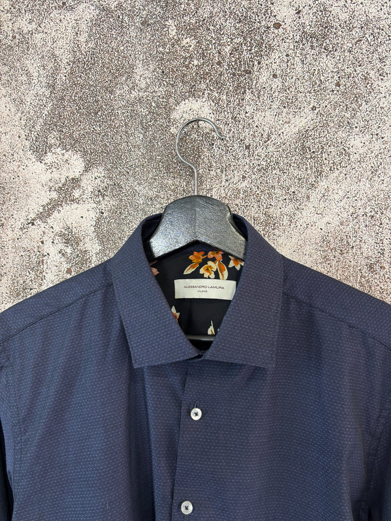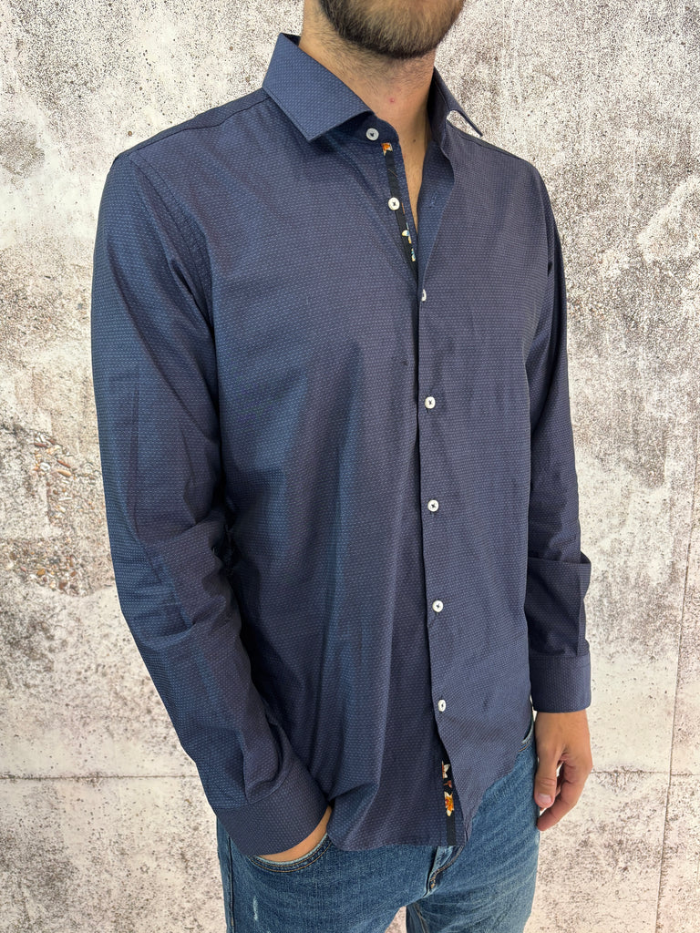 Camicia cotone blu microfantasia