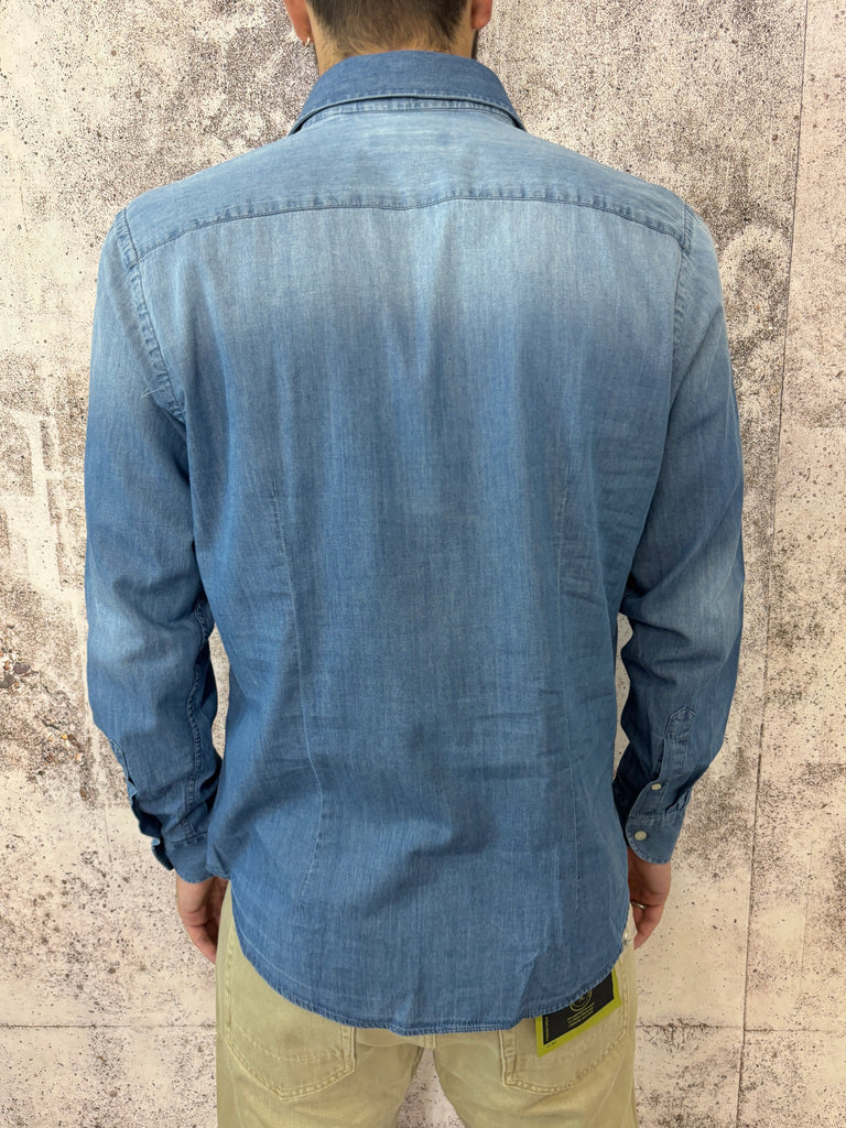 Camicia jeans di Lamura, sempre un grande classico; immancabile nell' armadio di ogni uomo per un look elegante ma sportivo allo stesso tempo