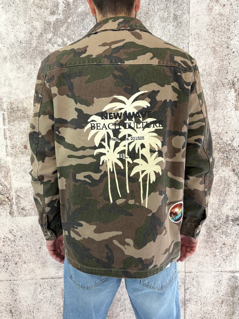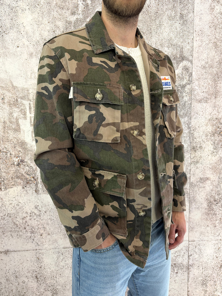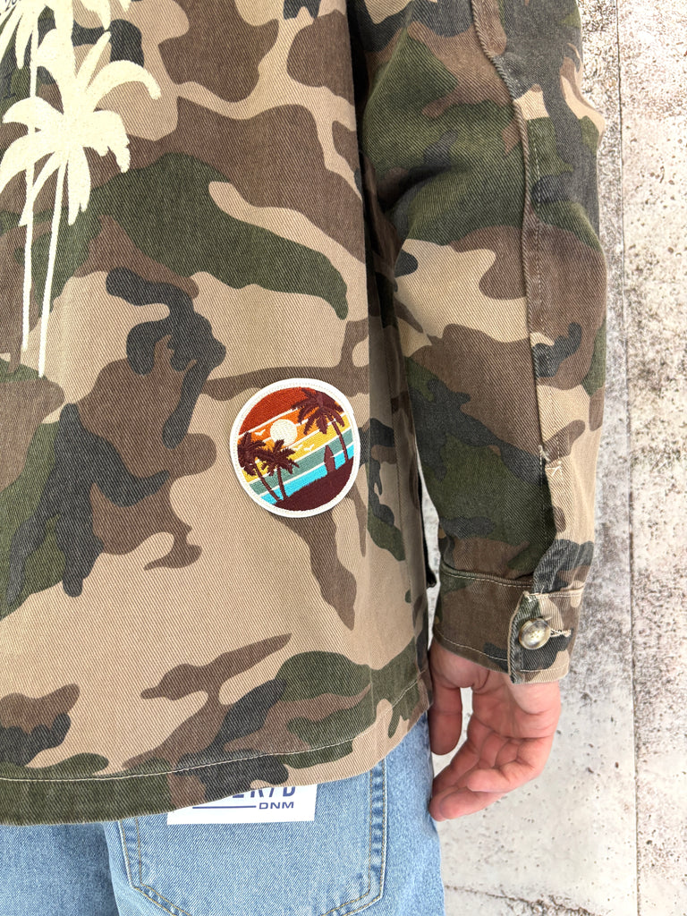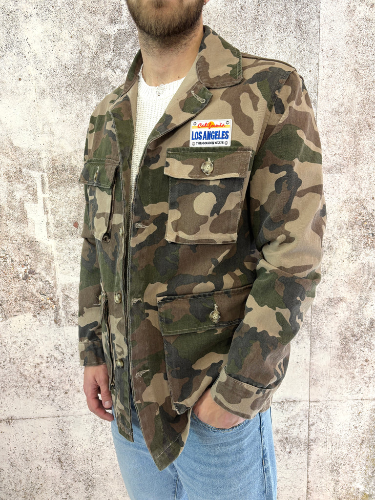 Giacca sahariana camouflage con patch e stampa retro