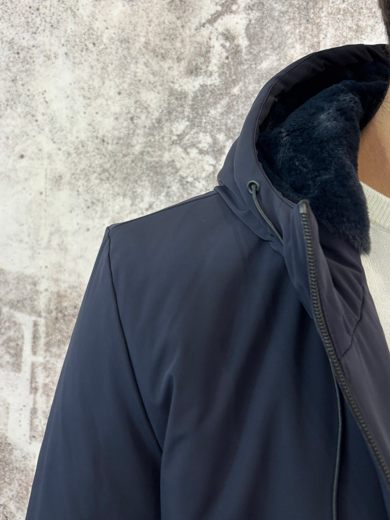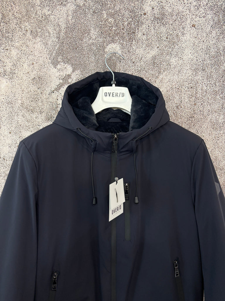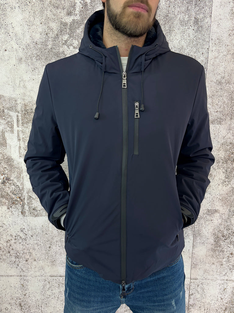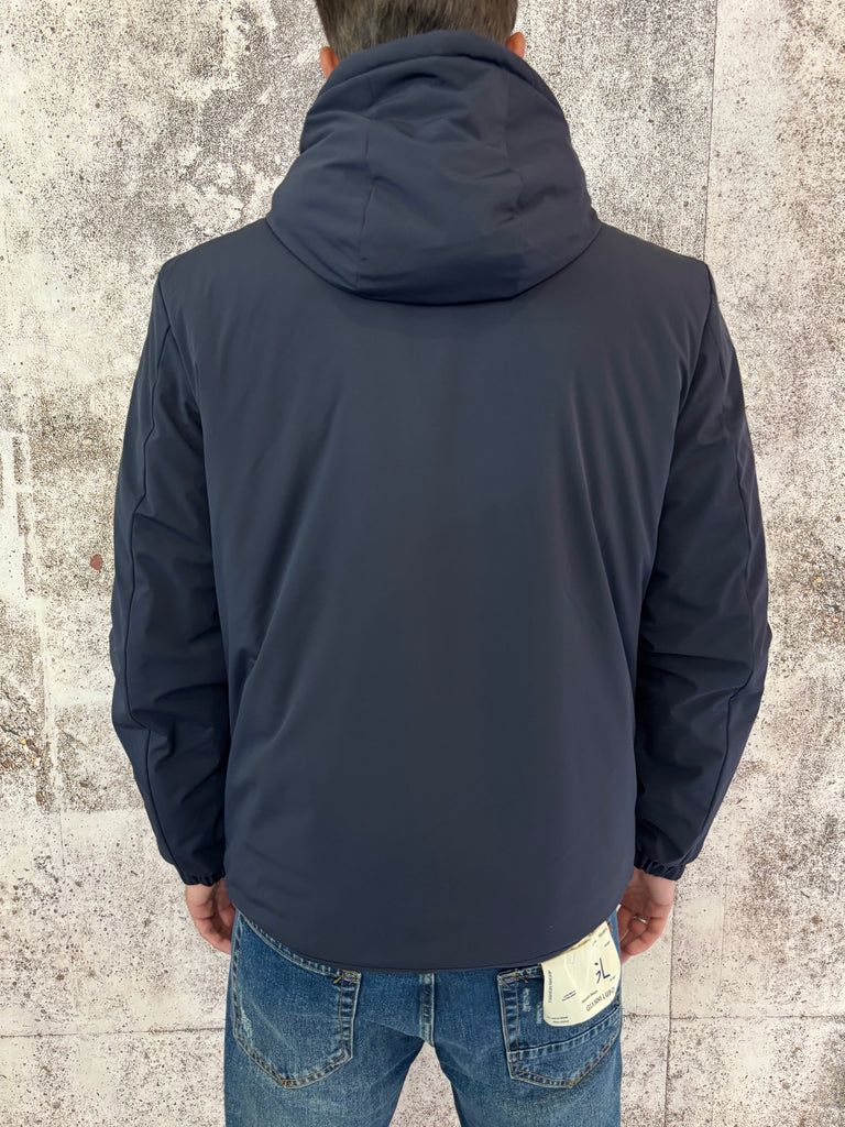 Giubbotto con cappuccio in tessuto tecnico antipioggia e antivento; chiusura con zip termosaldata , due tasche laterali esterne e due interne. Perfetto per la stagione Invernale