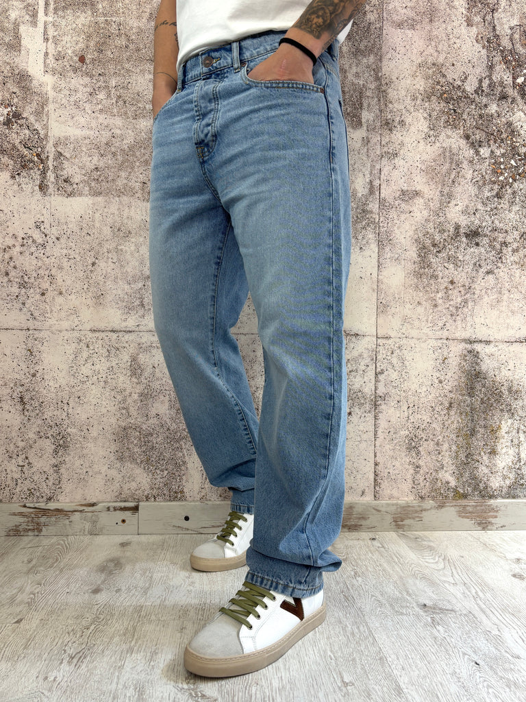 Jeans di Over/D caratterizzati da una vestibilità con gamba dritta che scende uniforme dalla coscia fino alla caviglia senza stringersi.