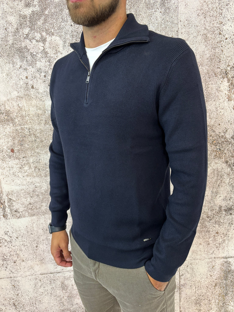 Maglione costine mezza zip di Gianni Lupo che unisce eleganza a sportività, adatto per diversi look: dalla vita di tutti i giorni al contesto lavorativo