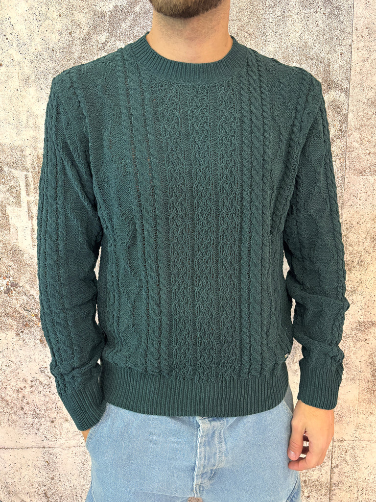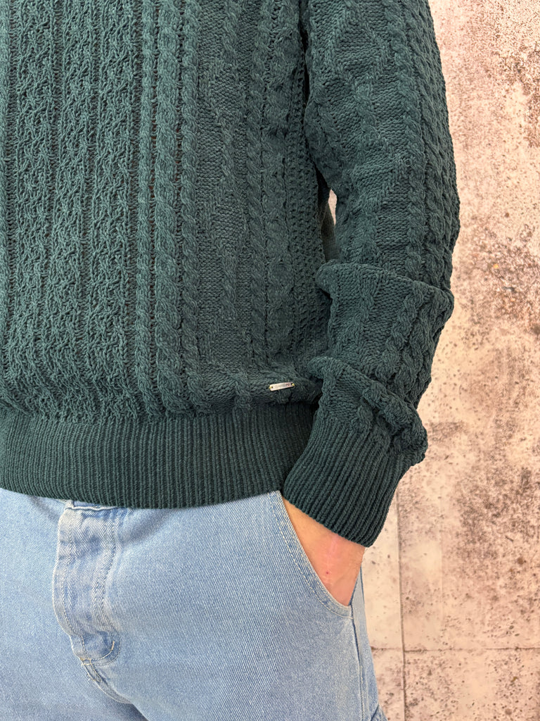 Maglione ciniglia trecce verde bosco