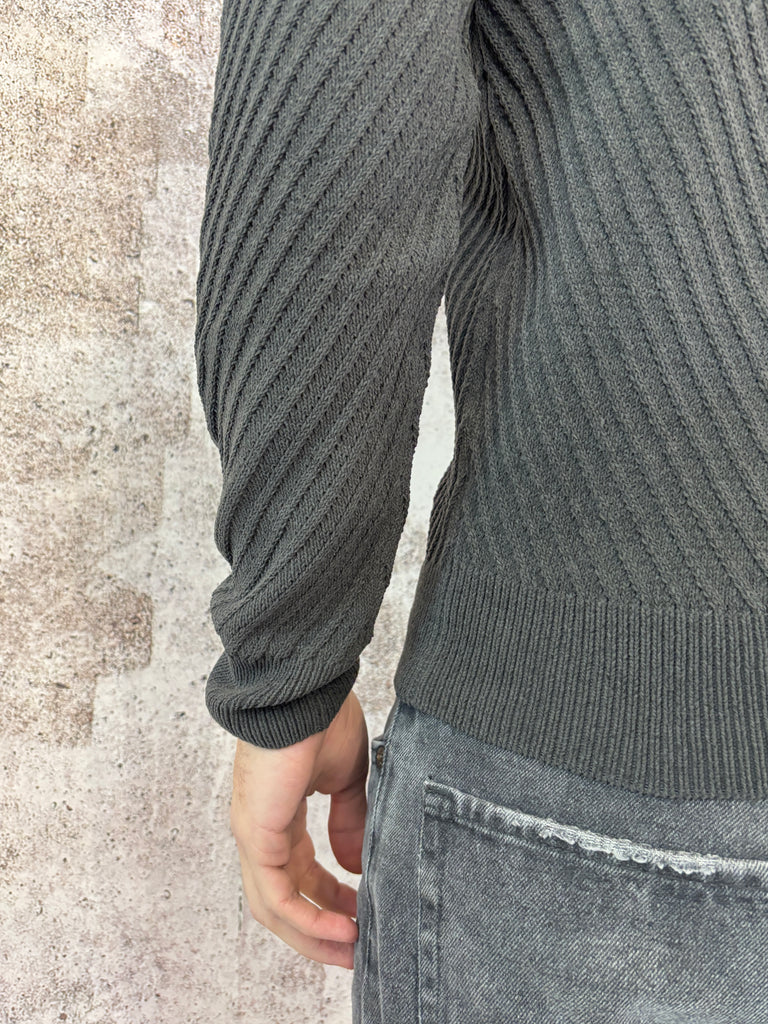 Maglione lavorato mezza zip grigio scuro